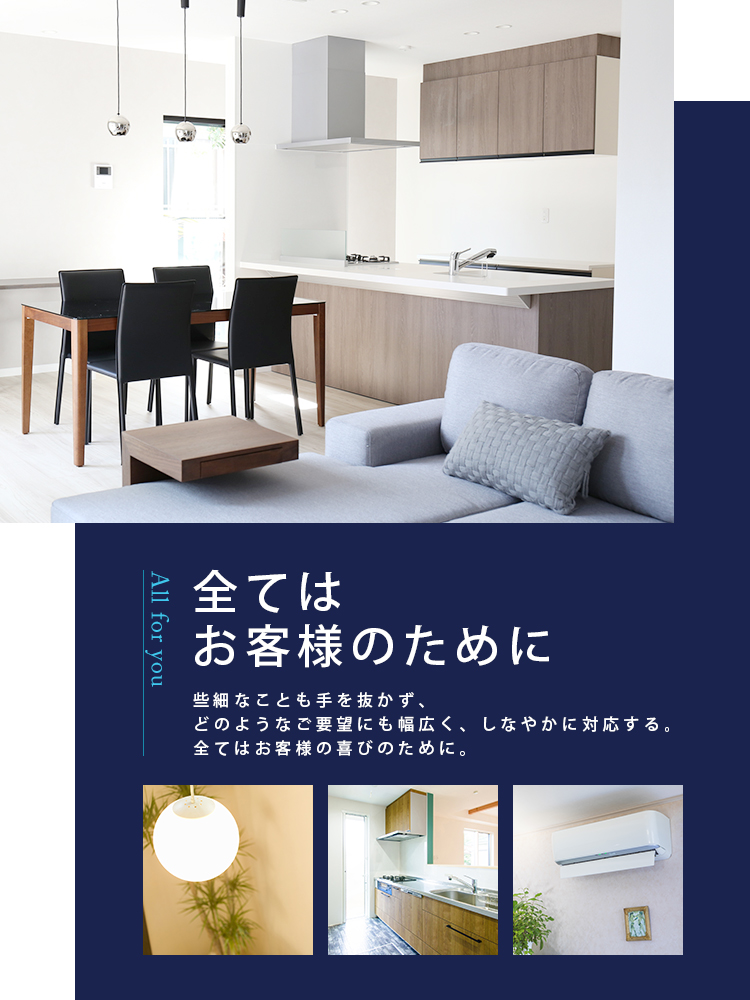 幅広いご要望に柔軟に対応し、常にプラスαの作業を意識することで、あらゆる面でご満足いただける空間をご提供しております。